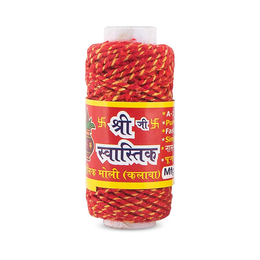 Mauli Moli Kalawa Kalava Thread Roll Cotton Mouli Wrist Thread. Dhaaga Laccha Raksha Sutra Panchrangi Dhaga Reshmi Mauli Premium Quality Mauli with Unlimited Designer Moli Puja Path Material Puja Article
