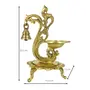 REOMEK Handicraft Brass Peacock Design Showpiece Diya|Oil Lamp Deepak with Bell for Diwali Pooja/Puja Home Decoration and Gifts (15.5 x 7.5 x 20.5 cm Gold Lotus Shaped 1 Wick)