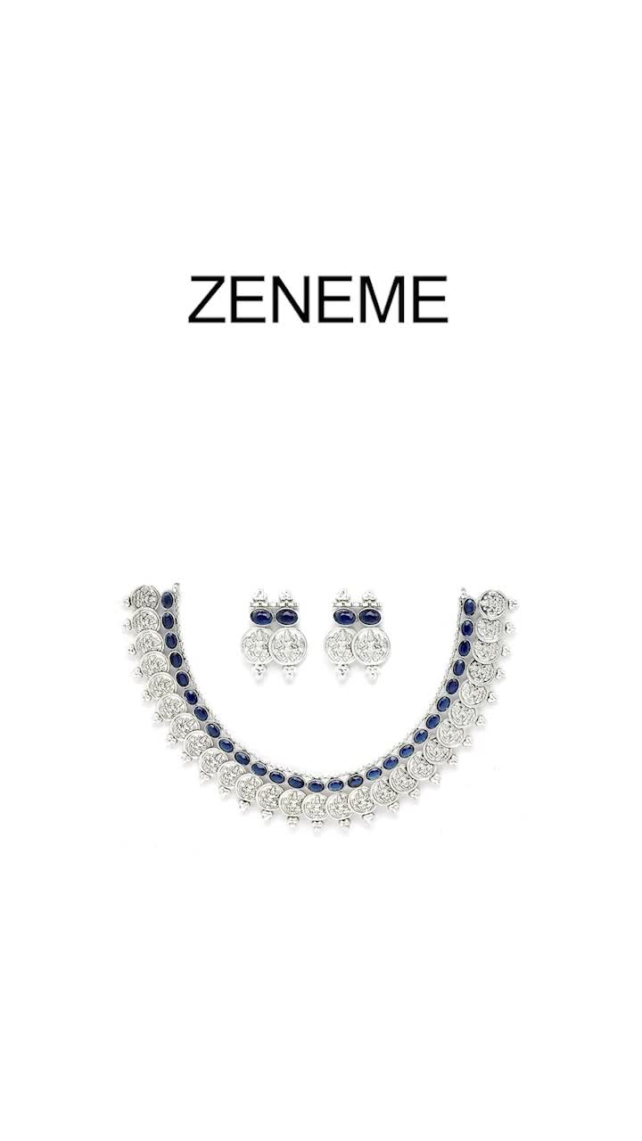 HomeHomeSpiritualTemple AccessoriesWomen New Antique Oxidised Silver Plated Traditional Temple Coin Red American Diamond Studded Necklace With Earrings Jewellery