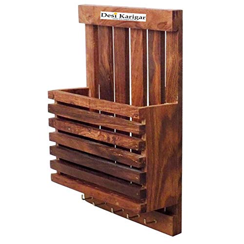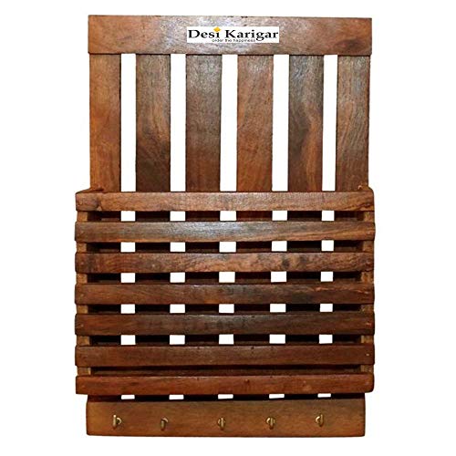 Beautiful Wooden Wall Rack With Key Holder Adorn the walls of your home with this elegant wall shelf . Made of high premium quality material it is easy to maintain. This is a nice way of housing your books keys souvenirs decorative and other curies.Colour - Brown Size - (LxBxH-9x3x11) Inch Material Used - wood Package Contents - Pack of 1"