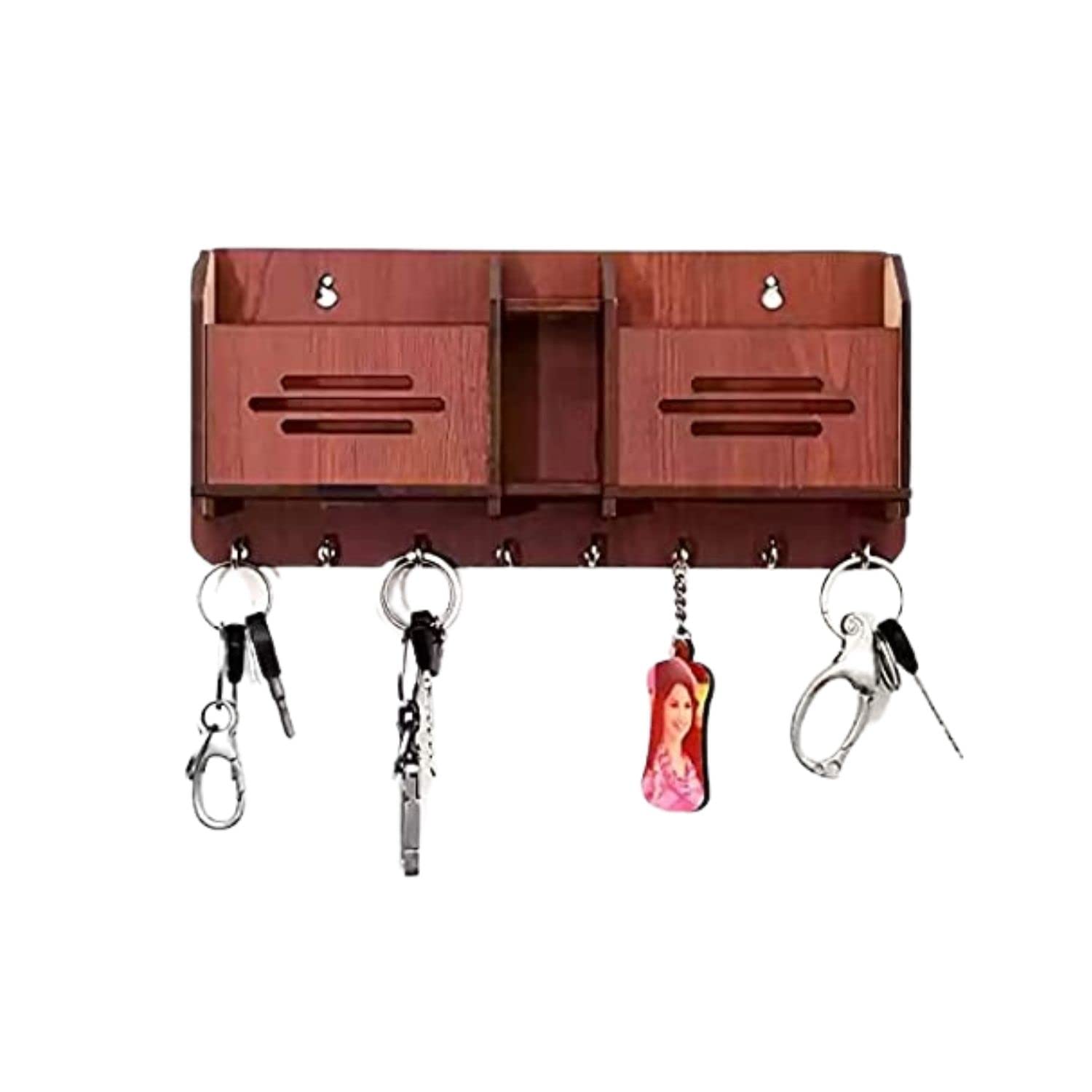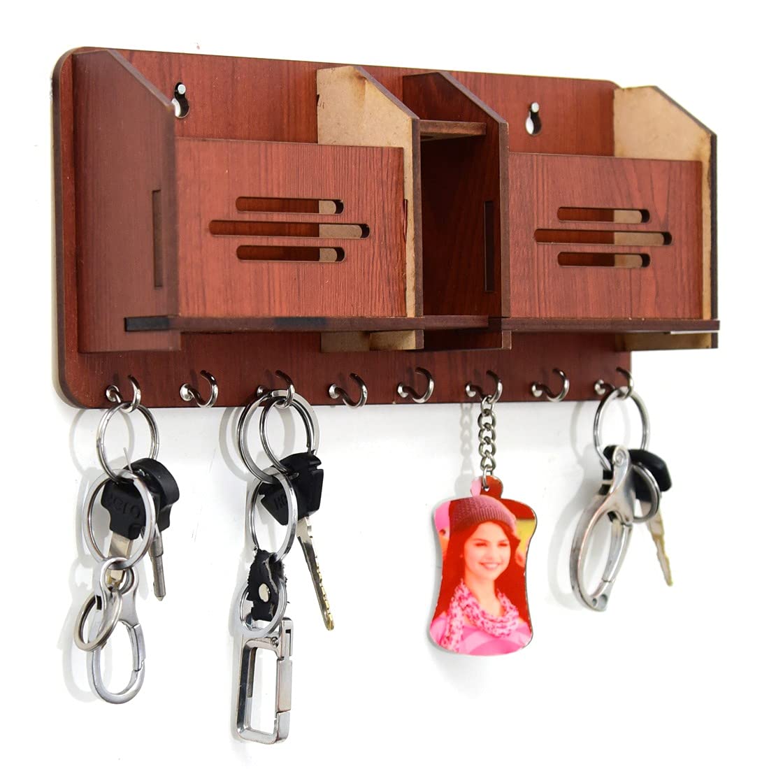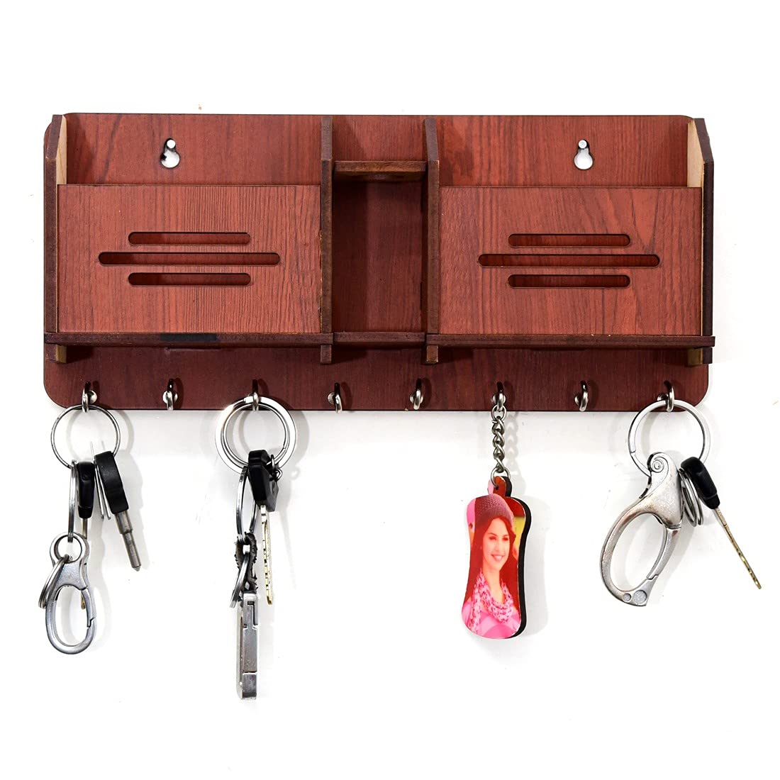 WOOD CRAFTS OF RAJASTHAN Wooden Attractable Wall Key Holder with Mobile Stand || Gift for Family & Friends Home Office Teachers Gift Thank You Gift House Warming New Year Promotion.