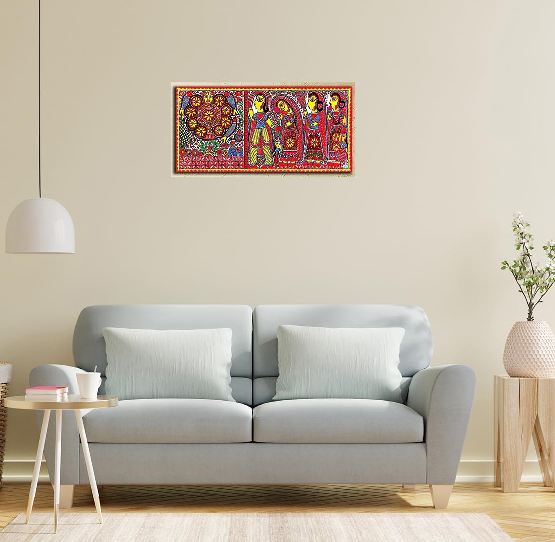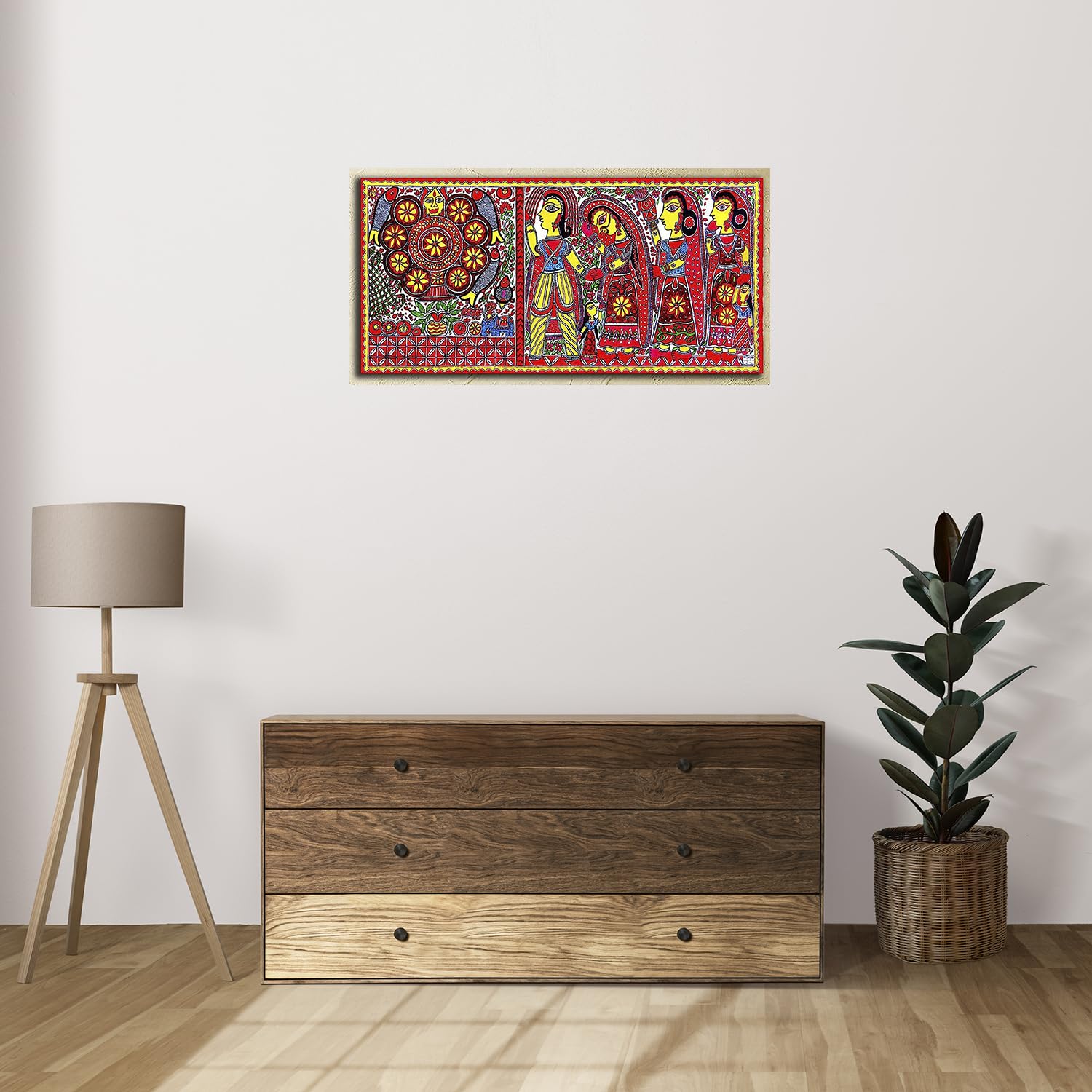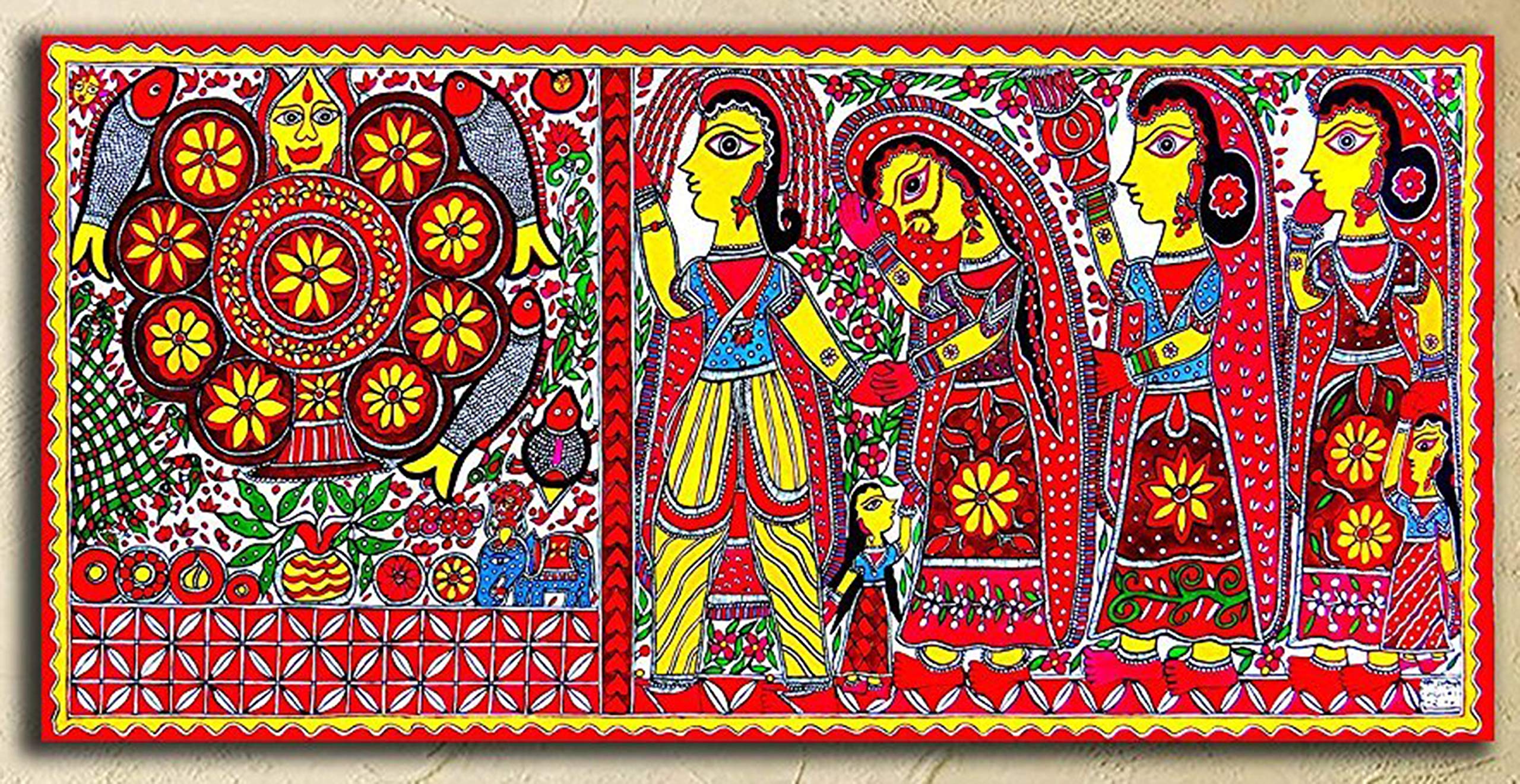 • Madhubani art paintings for wall decoration is exhaustively open to diverse interpretations. Instead these paintings give viewers the occasion to peek into depths of paintings and create a story of it in your mind. Madhubani art believes in not giving a c