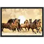 Poylaamo Seven Running Horses Framed Wall Painting for Living Room Bedroom and Vastu (Light Brown L)