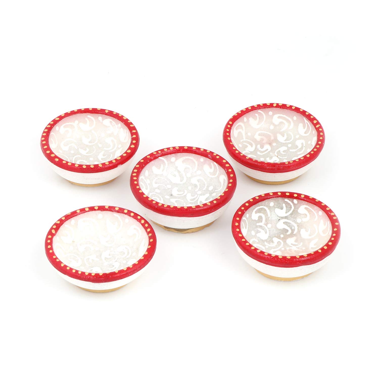 SILVER FILIGREE CRAFT - CHANDI TARKASHI Exclusive Fine Export Quality Makhrana White Marble Inlay Painting Work 5 Handmade Marble Diya / Katori Deepak Set . Combo of 5 Marble Diyas. Perfect Festive Gift Diwali decoration Giveaway Home Decor House Decoration (5 Pcs Multi-colour) FeaturesPackage contain set of 5 diyas.It is made up of pure makrana white marble.GREAT FOR ANY OCCASION: Diwali Deepawali Pooja Puja Ceremony Wedding graduation baby shower bridal shower quinceanera thanksgiving holiday or Christmas party New year giveaways return gifts.This is a product designed emotionally made by rural artist showcasing their skilled Artisan Craftsmanship. A very appealing Eye catching ethnic Antique traditional style master piece. All are Handmade so some imperfection might persist. It is very intricately designed and looks very attractive. It is made of marble and is a great during diwali puja and as well as a show piece. Product usage: specifications item type: handicrafts material: stone specialty: marble items disclaimer: the fine design pattern and colour tone of the product may vary slightly from that shown in the image.