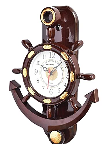 Click n ship Pendulum Wall clock Built in the traditional style this beautifully crafted clock is 1 of the design in sensational wall clock range.Click n ship gives you an ideal combination of functionality and stylishness. If you are someone who is seeking a high quality and stunning wall clock for your home or office then this is an ideal pick for your home. Click n ship provide durable wall clock can be a perfect fit for your living room bedroom or kitchen. It can also be perfect gift for your colleagues and family friends during marriages and house warming ceremonies. This clock will definitely give royal look to your home/office decor sure to be admired by your guests. These non ticking wall clocks will undoubtedly adorn your home and make it stand out from the rests. Best Diwali Gift items for your staff members family members friends relatives etc. A classic ship steering alike designed wall clock with pendulum that would add to the decor of your house. Care Instruction:- Don't wash use dry or wet cotton cloth to remove dirt. Product Color - Brown Material- Plastic Quality-Premium Quality. Design is unique. MADE IN INDIA