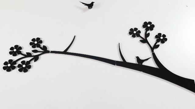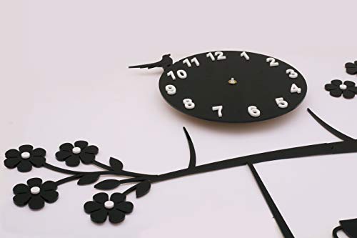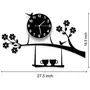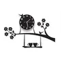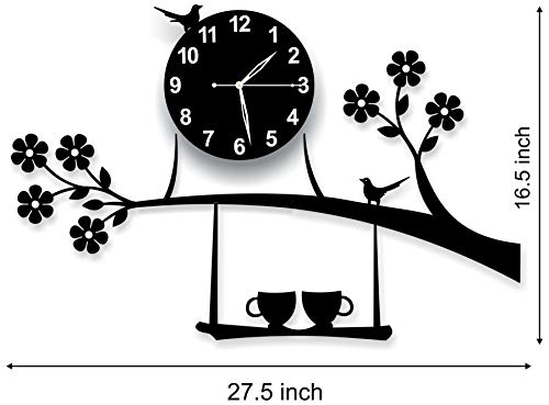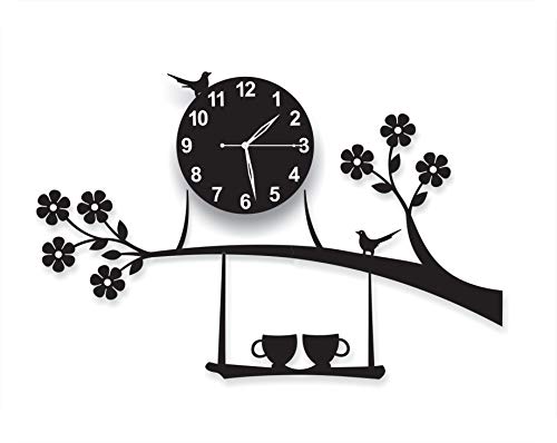 invision1 Plastic 3D Acrylic Tree Birds Coffee Cup On Jhula Design Wall Clock (Black 69.9 x 41.9 x 1.3 cm)