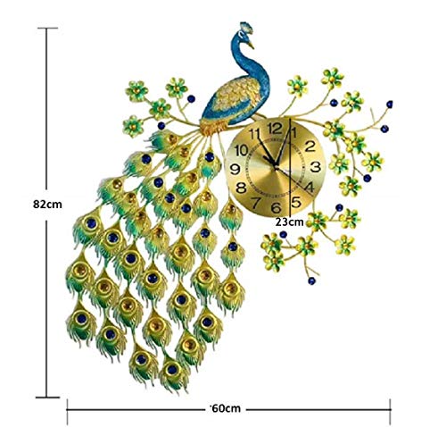 RONTENO Metal 3D Peacock Big Size Wall Clock for Home (Gold Blue 32 Inches x 24 Inches) - Birds Theme