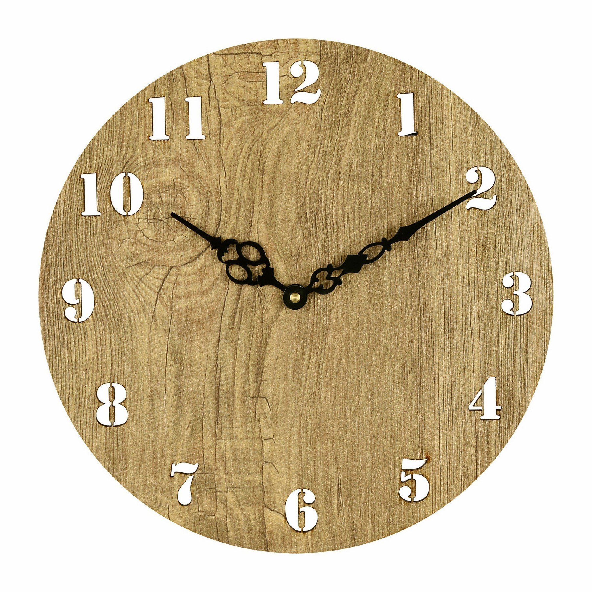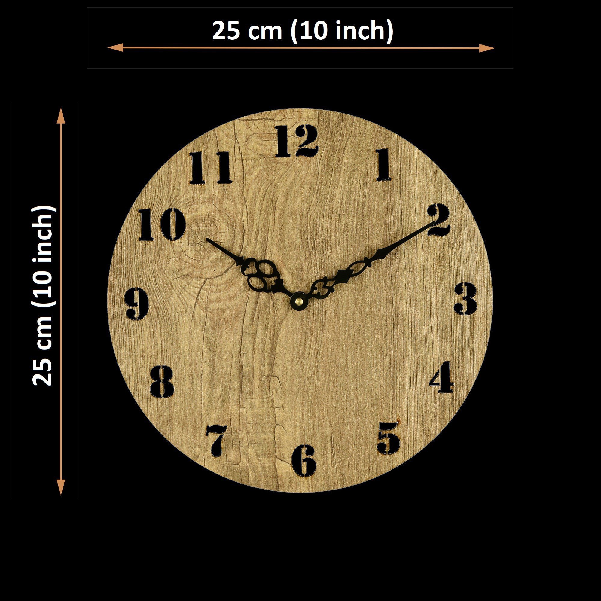 Attractive design: Unique rustic country design with cut-out numbers. This clock has no frame or glass cover.