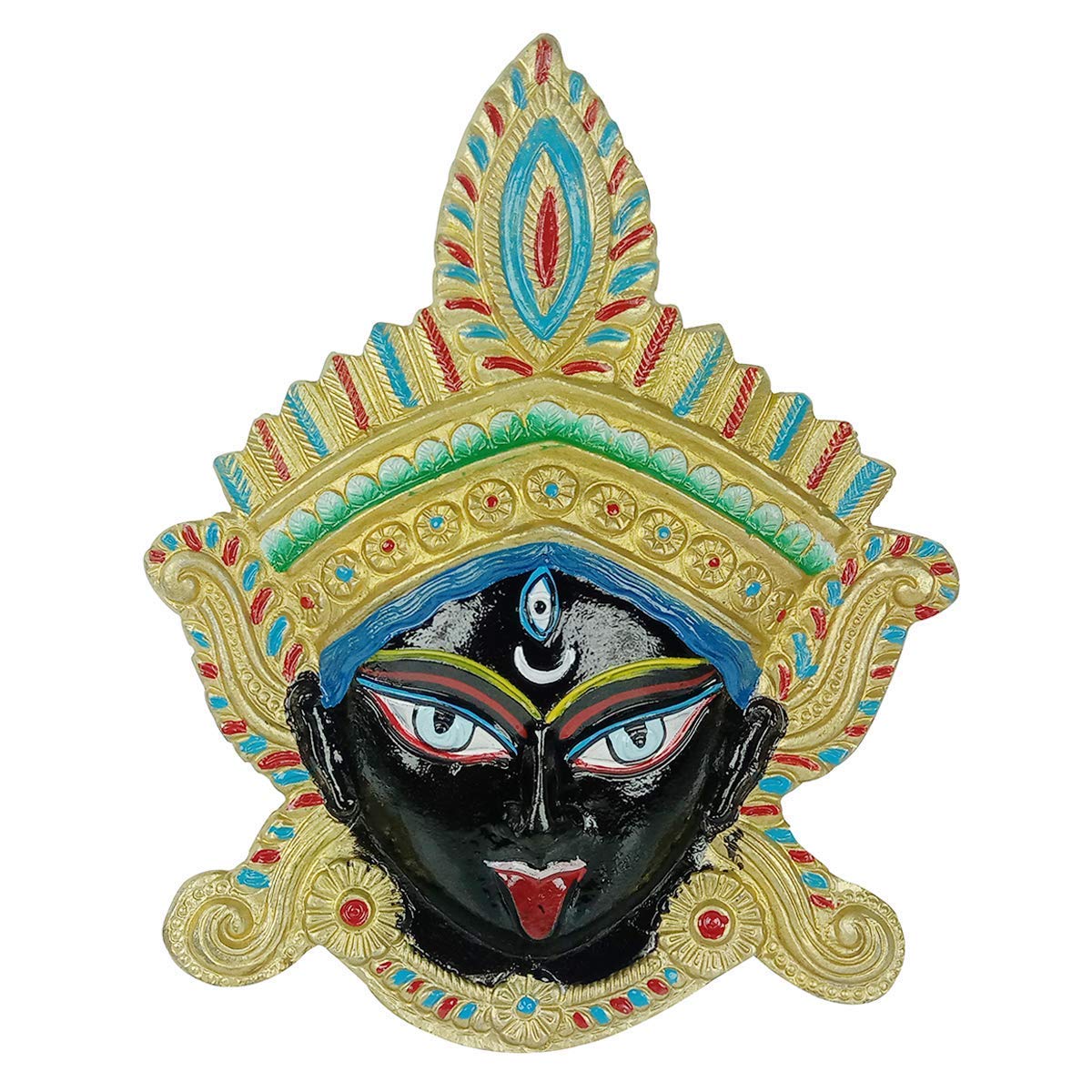 DHOKRA CRAFT Metal Maa Kali Najar Battu is Painted with an antique finish. It's designed to looks traditional stylish and inspiration from the day's of royal touch which is made in white-metal casting with silver antiques finish white metal to bring elegance to your home. This is hand made handcrafted items use it to religious worship of god&goddess. That is use and utility items & an ideals gift it to your dear once to pass on your best wishes that is an ideal gift for have House warming anniversaries birthday wedding gifts return gifts corporation gifts religious-gifts & Indian festivals. Our White Metal Gold Plated Wall Hangings is an impressive piece of art that is made from the finest-grade raw materials and intricately designed by our teams of adroit designers and craftsmen using high-end technologies.