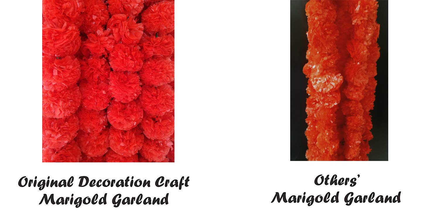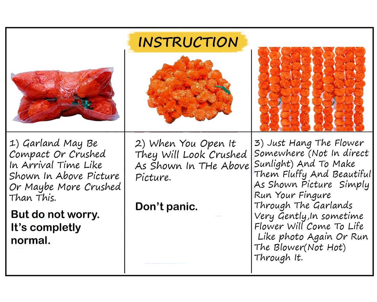 Garlands may be compact in arrival time. To make them Fluffy and Beautiful like in the pictures simply run your fingers through the Garlands or use a blow dryer to add some volume. This will make them look like natural Marigold Flower.