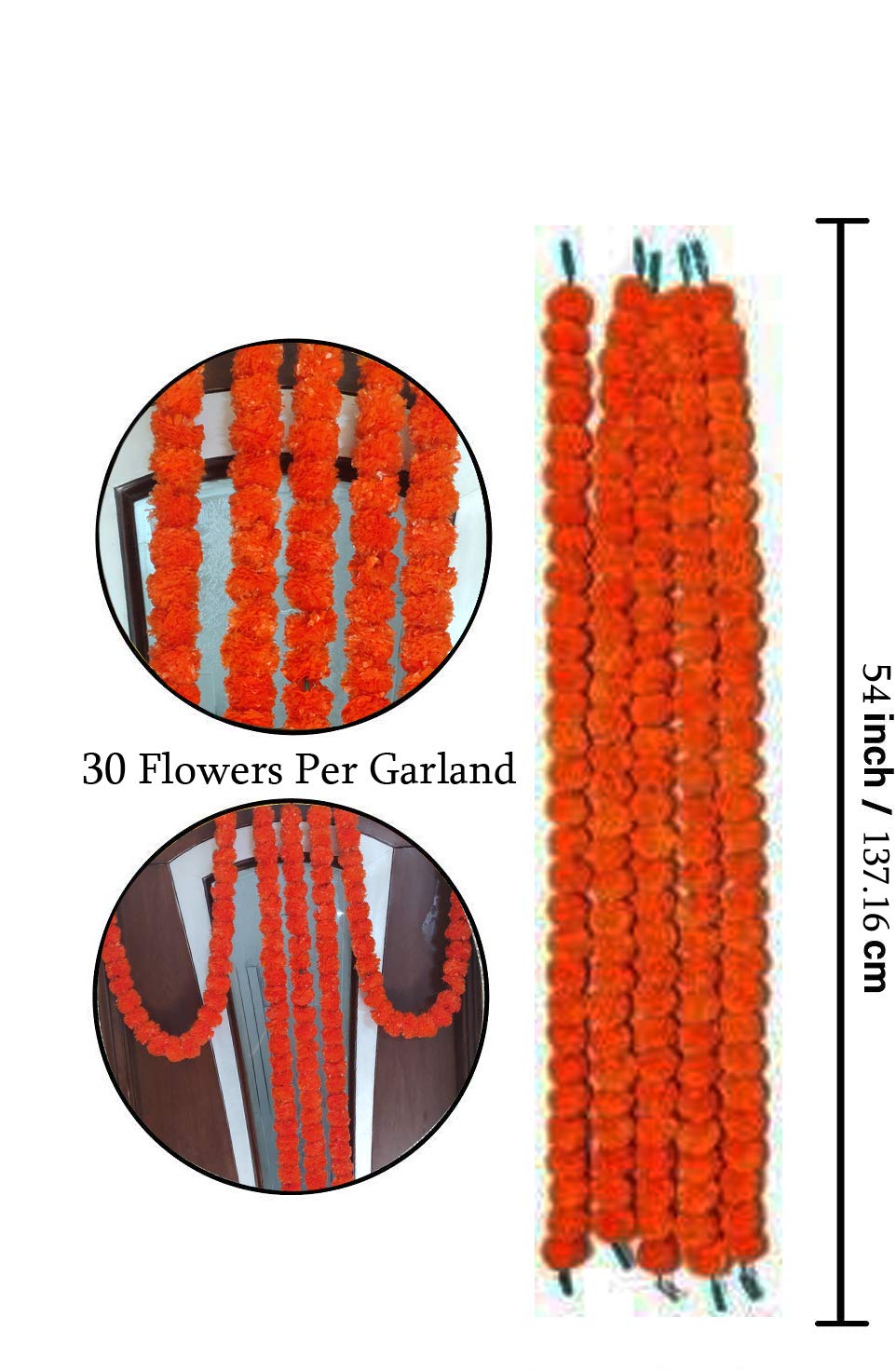 Marigold Fluffy Garlands Genda Phool Mala for Diwali Home Decoration Items (Pack of 15)