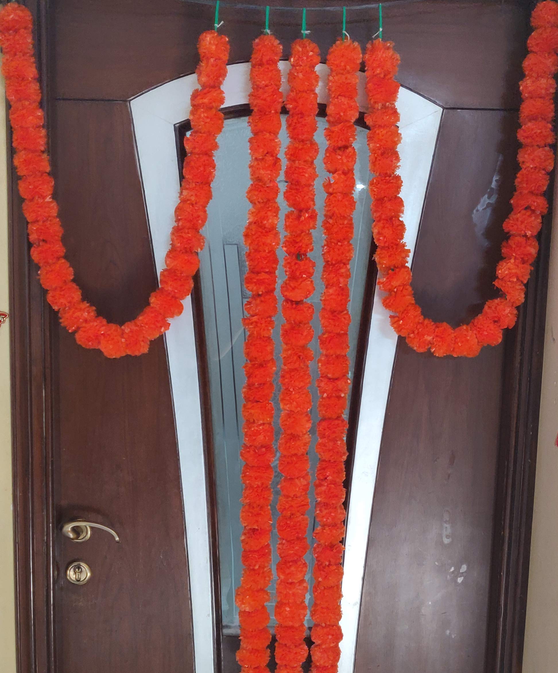 CraftVatika Marigold Fluffy Garlands Genda Phool Mala for Diwali Home Decoration Items (Pack of 15)
