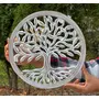 TIBETAN RITUAL CURTAIN Handcrafted Wooden Tree of Life Wall Decor Hanging Art (White)