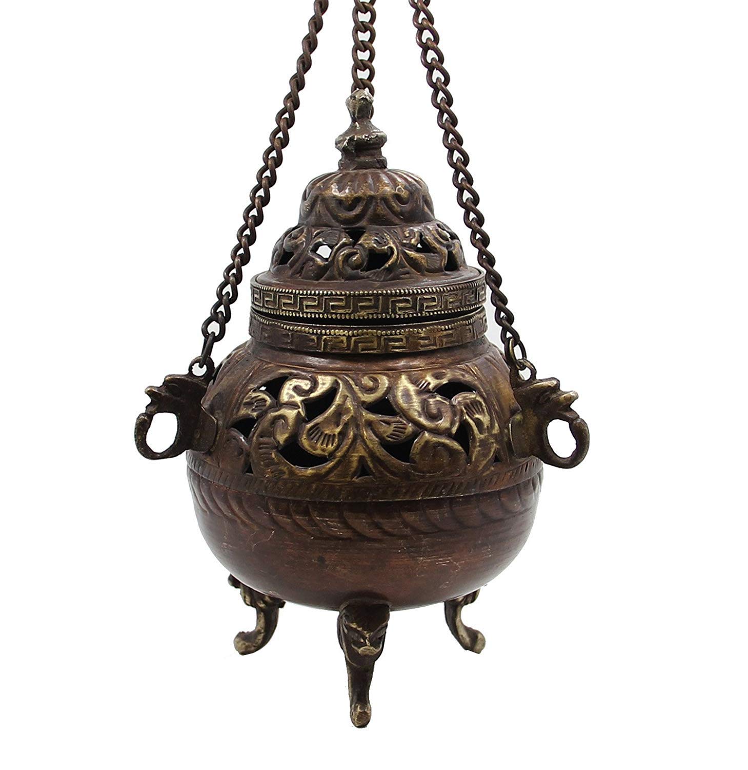 TIBETAN RITUAL CURTAIN Tibetan Traditional Hanging Incense Burner Copper 5" High