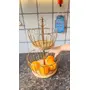 HomeHome ImprovementHousehold Supplies2 Tier Home and Kitchen Fruit Vegetable Baskets Metal and Wooden Multicolor Black/Gold/Rose Gold Size (16.5 Inches Height) (Gold)