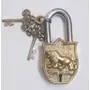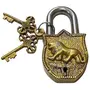Parijat Handicraft Presents The royal brass locks on ancient mysterious doors is what you remember when you see this piece of art. The lock is made in brass and coated with golden finish. Handcarved in it is a Tiger the symbol of strength. The lock comes with two keys and gives an ancient and rich look to your door.