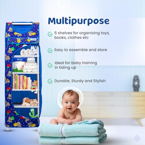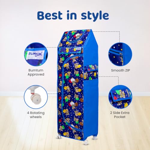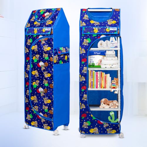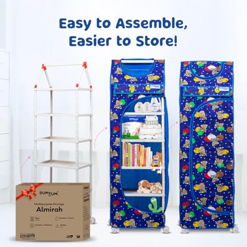 Bumtum Baby Wardrobe Multipurpose 6 Shelve |Foldable Almirah| Baby Wardrobe for Clothes Storage | Baby Wardrobe Cover | Baby Almirah with Wheels (Blue)