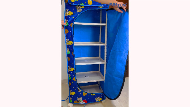 Bumtum Plastic Baby Wardrobe Multipurpose 6 Shelve |Foldable Almirah| Baby Wardrobe for Clothes Storage | Baby Wardrobe Cover | Baby Almirah with Wheels (Blue)