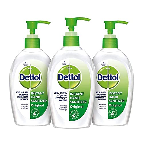 Dettol Liquid Disinfectant for Floor Cleaner Surface Disinfection Personal Hygiene (Lime Fresh 1L)Dettol Disinfectant Multipurpose Liquid cleaner provides protection to you and your family against illness causing germs. This disinfectant liquid sanitizes your home and also helps maintain your personal hygiene. It can be used in bath laundry floor and surface cleaning leaving everything clean and fresh. This multipurpose disinfenctant cleaner for home is recommended by Indian Medical Association. USAGE: Recommended dilutions to protect your family from germs: Bathing - 1 capful to a bucket of water (10 litres); Kitchen Slab - 1 capful to a litre of water; Shaving - 1 capful to a litre of water; Floor Cleaning - 1 capful to a litre of water; Laundry - 1 capful to a litre of water in the last rinse; Refrigerator - 1 capful to a litre of water. If swallowed seek immediate medical advise.Dettol Original Germ Protection Alcohol based Hand Sanitizer Pump 200ml (Pack of 3)DETTOL Hand Sanitizer is protection on the go; whether you are using a public toilet public transport or simply eating outside use DETTOL Sanitizer that offers water-less protection against germs. DETTOL hand sanitizer is specially formulated to protect you from 100 illness causing germs withot the use of soap and water. This rinse free and non-sticky sanitizer is recommended by Indian Medical Association. USAGE: Squirt a thumbnail amount onto the palms. Spread sanitizer and rub palms together. Rub tips of each hand with palm of other hand. Rub hands together until they are dry.