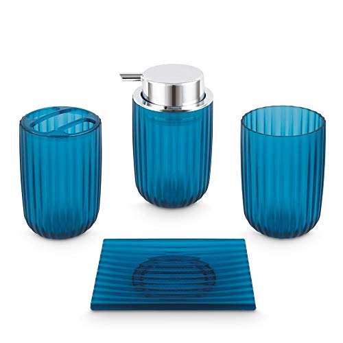 Freelance Oasis 4 Pieces Bathroom Set-Dispenser, Toothbrush Holder, Tumbler & Soap Dish, Blue