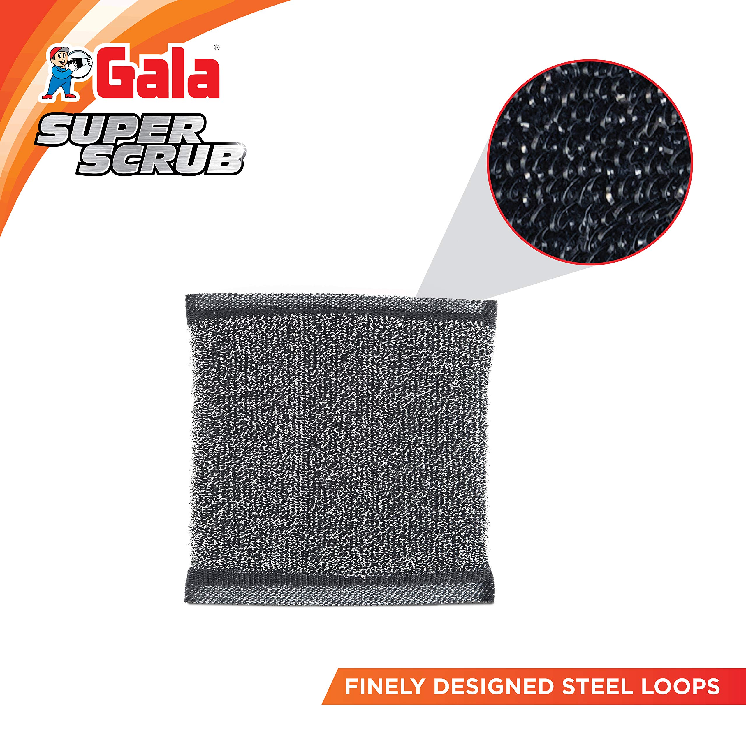 Items delivered: 6x Gala Super Scrub Metallic Steel Sponge Set / Stainless Steel Loop Mesh (Material) / Black / No Soap Included