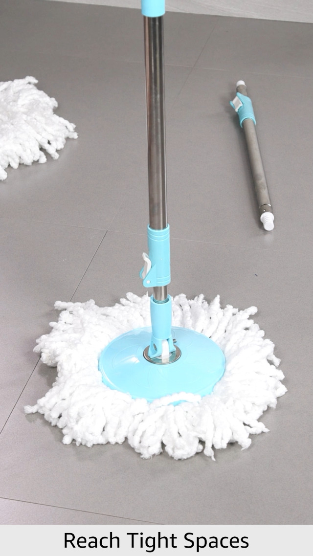 Ganesh 360° spin cleaning mop stainless adjustable steel rod handle stick with refill provides easy & quick cleaning options to dirt and dust at your home offices hotels etc. It reaches under furniture hard to reach places and remote access places; This set comes with two micro fiber cloth which is non-abrasive and super absorbent fibers which absorb darts and water making it easy to clean;It has extendable mop handle which lets you adjust the height of your mop according to your requirement. The mop handle comes with handle lock system which locks the height of handle securely in place.