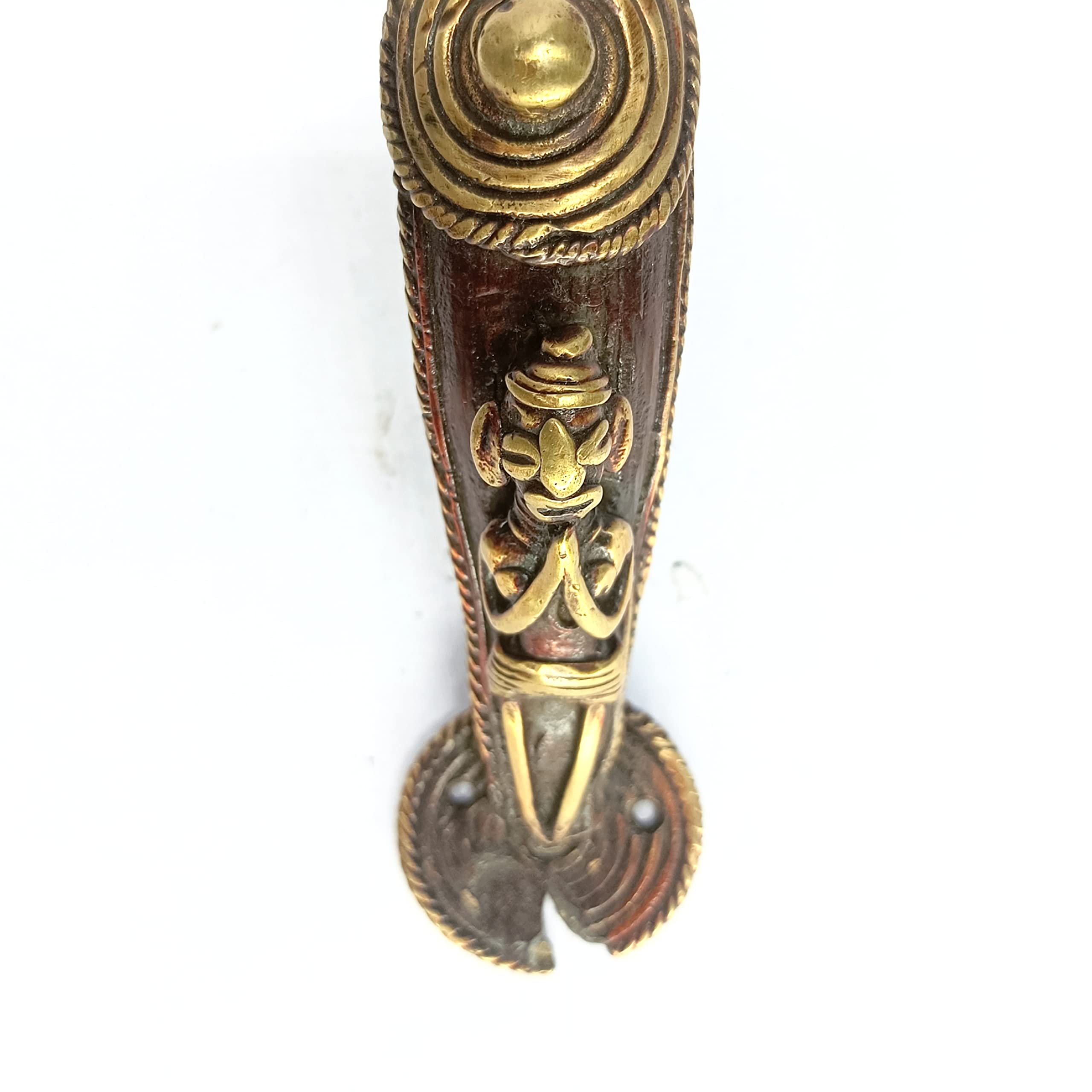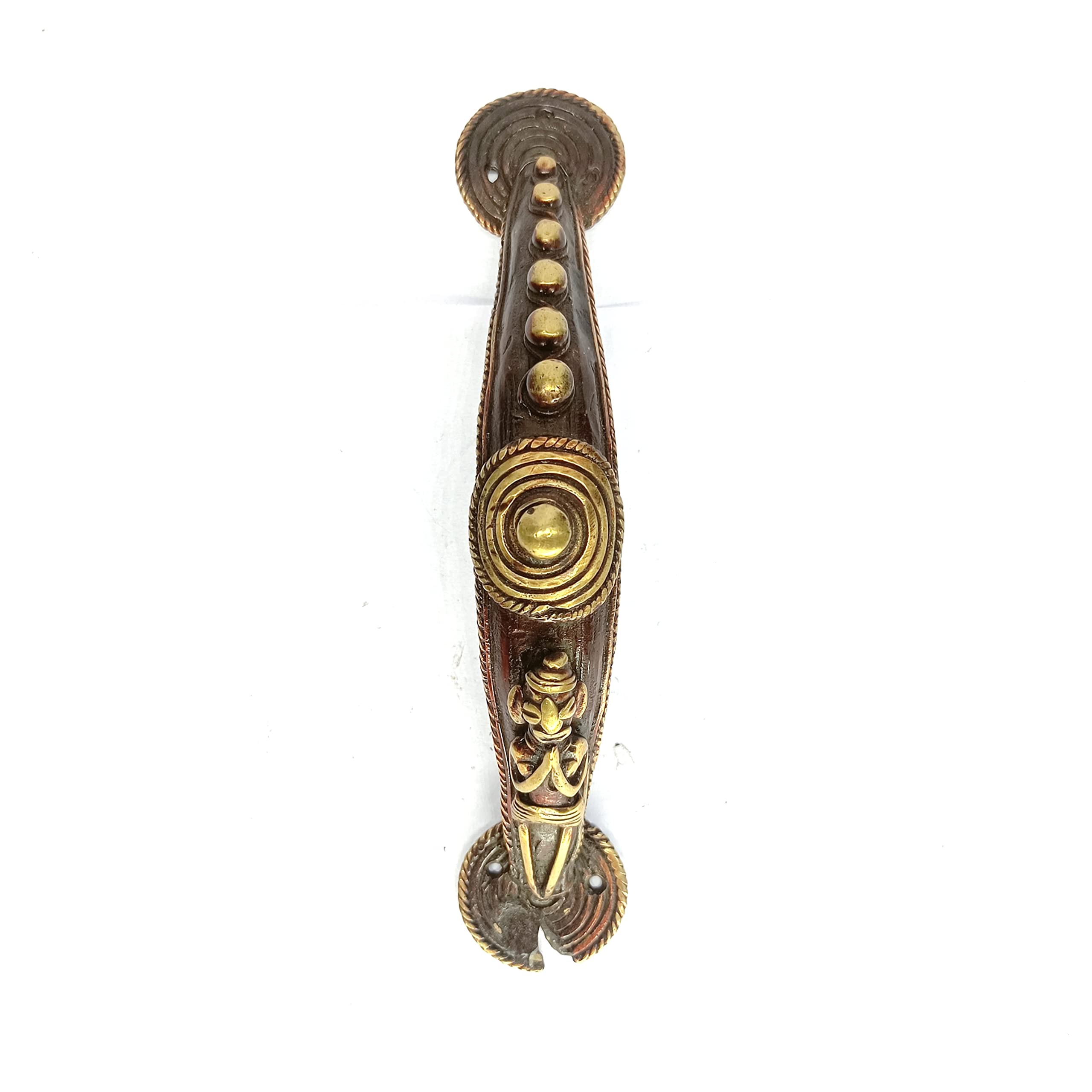 DHOKRA CRAFT brings you this decorative tribal man design door handle made of good quality brass. Handmade in Dhokra art this door handle enhances the decor value of your house office or temple and will add a spot of luster to the ambience.Strong durable and comfortable to hold can be attached easily with two screwscan be used for doors cupboards cabinets etc. Crafted by the tribal artisans of Chhattisgarh (Dhokra art of Chhattisgarh). Dhokra craft is a casting technique using age-old wax casting. Hence the product might have some dull/black patches which is a symbol of handcrafted Dhokra art. Please note: Due to various types of lighting and flash used while photoshoots the colour shade of the product may vary.