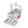 Introducing our HAZEL Stainless Steel Cash Box for Shop Counter Table Drawer a durable and secure solution designed to revolutionize cash management at your shop counter. With its sleek and reliable design this cash drawer offers a wide range of features that cater to the needs of businesses and cashiers ensuring safe and efficient transactions. Crafted from high-quality stainless steel this cash drawer is built to withstand the rigors of daily use delivering exceptional performance over an extended period. The robust stainless steel construction guarantees resistance against corrosion dents preserving the professional appearance of the cash drawer even with continuous usage. Experience the convenience and security of our premium removable inner compartment tray thoughtfully designed with clip holders for notes and a dedicated slot for coins. The fold-away handle adds to its practicality allowing for easy portability. Additionally the cash box comes with a removable coin tray for added organization. This versatile solution is perfect for various settings such as bank lockers homes and shops. Keep your valuable possessions safe and secure making it an ideal choice for storing cash coins gold jewellery silver jewellery cheques mobile phones gemstones and more. In conclusion our HAZEL Stainless Steel Cash Box offer durability security and convenience making them indispensable tools for efficient cash management at shop counters and events. With their sturdy construction comfortable handle adjustable compartments and sleek design these cash management solutions streamline operations enhance security and safeguard your valuable assets.