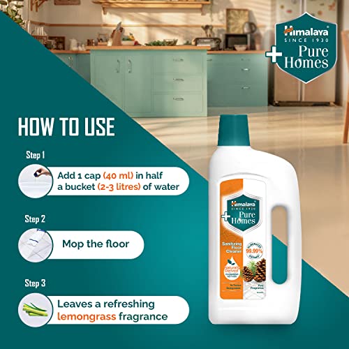 Himalaya Pure Homes Sanitizing Floor Cleaner is specially formulated with naturally derived ingredients including organic acids and antimicrobial plant oils like Tea Tree and Vetiver which eliminate 99.99% of germs. This floor cleaner has a gentle herbal fragrance effectively cleans the floor by removing dirt without any residue and leaves a brilliant shine