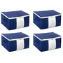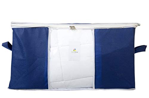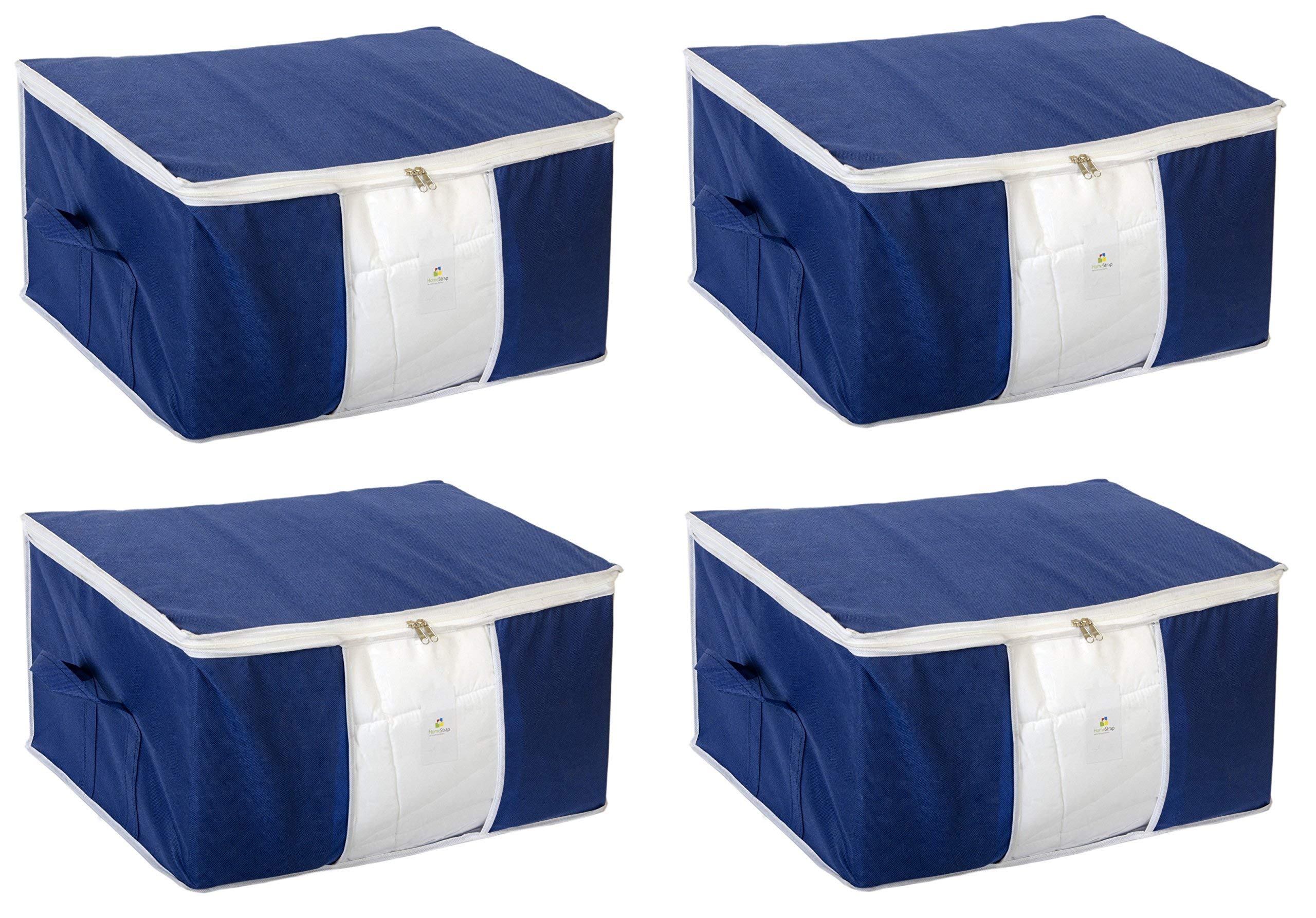 Homestrap Set of 4 Non Woven Underbed Storage Organizer/Blanket Cover Bag with Transparent Window and Side Handle for Quilt Clothes (Navy Blue)