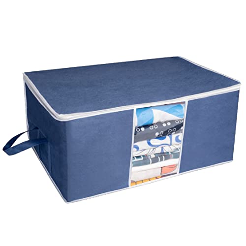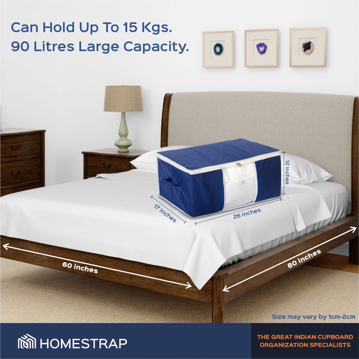 Homestrap Non Woven Big Underbed Rectangular Storage/Bag with Transparent Window- (Blue)