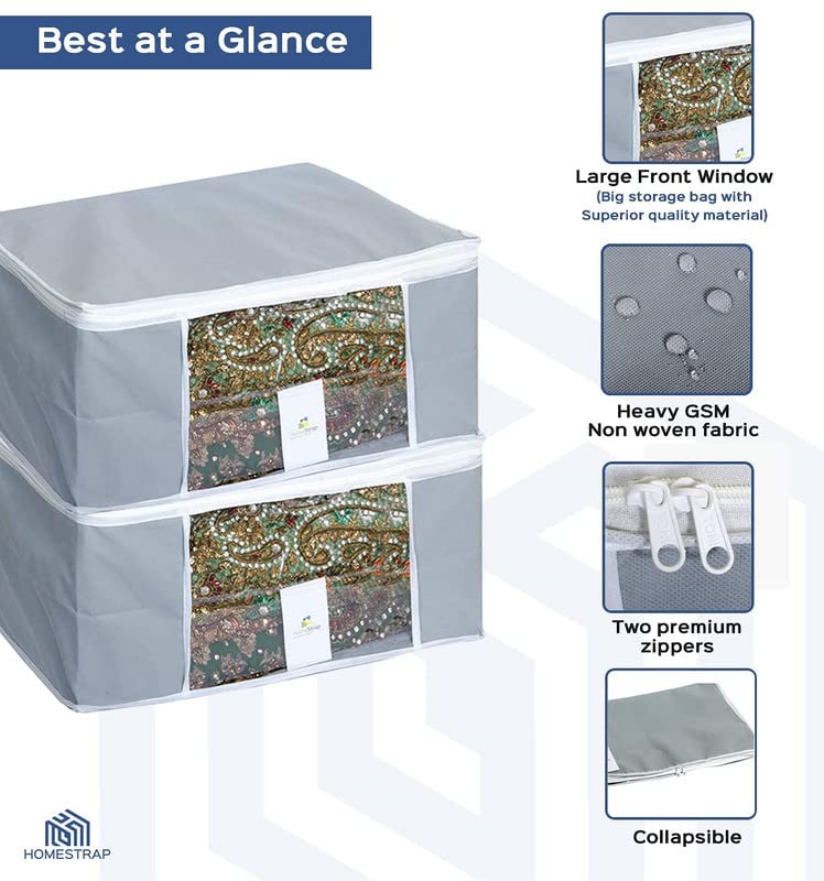 HomeStrap under bed is made of non woven fabric with two way zipper closure to keep contents safe and secure. Neatly keep your off season clothing or spare linens in our underbed storage bag for easy out of the way storage. The double zipper ensures ease of usage and keeps the content protected from pests and dirt. The soft grab handles makes it easy to pull out or replace from under the bed or attic and the large transparent window design lets you see what is inside just at a glance. Fold and stow away when not in use. Create a space beyond space!!
