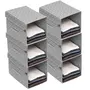 Homestrap Non Woven Fabric shirt stacker helps you to arrange and organize your shirts and clothes systematically and neatly in your wardrobe. The hard engineered base helps it to retains its shape and keeping your wardrobe well organized. As the shape of this shirt stacker is retained it further helps you to keep your clothes wrinkle-free. Homestrap shirt stacker is completely collapsible when not in use hence easily storable. Homestrap's range of wardrobe organizer helps you save and create more space in your wardrobe to store all your favorite clothes and accessories.Specs:Product Name: Wardrobe Organizer to store all your shirts and clothes neatly and systematicallyMaterial: Made from heavy Non-Woven Fabric to make it more durable & Classy & Hard Plastic Board inside to make stiff sturdy & to retain its shape.Dimension: Size in Inches: (W)9.5 (L)16 (H)9.5Design: PrintedFeature:Deep storage can make easy to keep shirt trousers & long cloths to put with less foldingCover with a Heavy Top Lid to take Weight of another Stacker. Open Top lid easily to place Shirt openly. Save and create more space in your wardrobe by arranging your clothes systematically Collapsible when not in use.