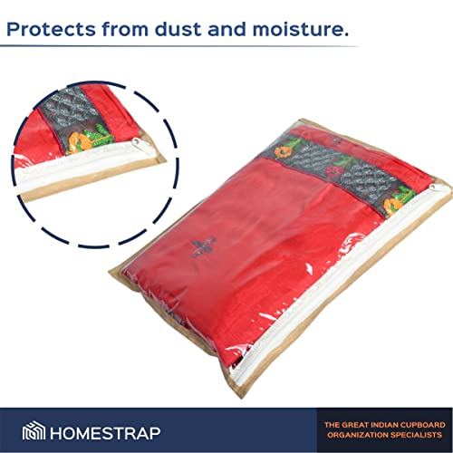Long life High quality Saree Cover Bag for organizing your costly and favorite sarees. Perfect way to organise your wadrobe and it is a best option to use while travelling. Transparent top gives you the convienence to instantly know which saree is inside. Made of high quality non woven material.