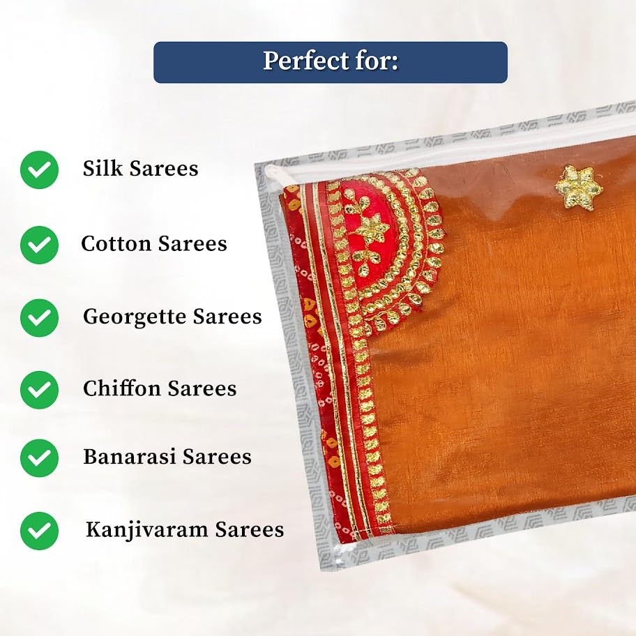 HomeStrap Printed Single Saree CoverLong-life high-quality saree cover Bag for organizing your costly and favorite sarees. The perfect way to organize your wardrobe and it is the best option to use while travelling. The transparent top gives you the convenience to instantly know which saree is inside. Made of high-quality non-woven material.Specs and Feature1. MADE IN INDIA | Homestrap Non-Woven Saree/ Suits Cover is ideal for storing your costly Lehengas Heavy Suits Saree Etc helping you to keep your sarees or other dresses in a separate cover from other items in your luggage. 2. Size: HomeStrap Single Saree Cover measures (L)17 Inches (W)15 Inches | (L) 44.5 CM (W)39.5 CM3. Material: Single Saree Cover is made of high GSM fabric with quality zippers | Transparent PVC on a top quick look4. Colour: Grey to match your interiors5. Design: Printed for rich look and feel6. Package Content: 25 Saree Covers