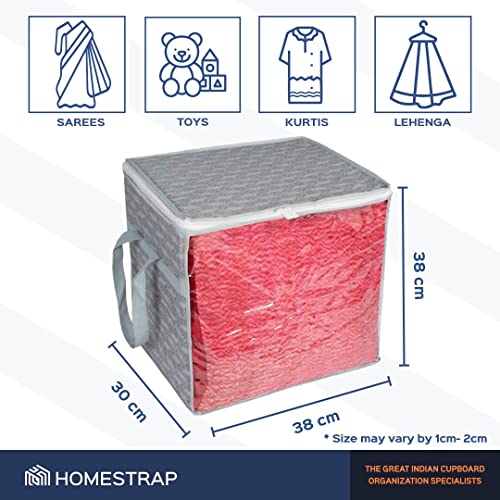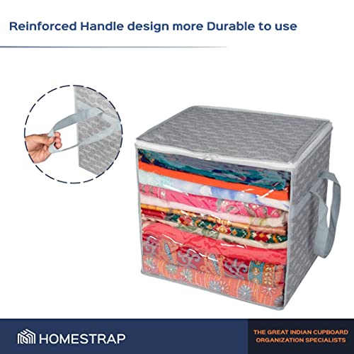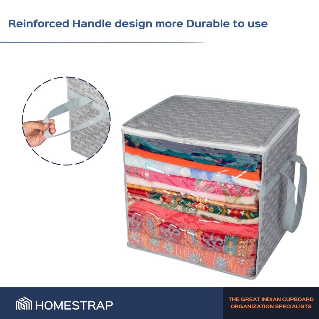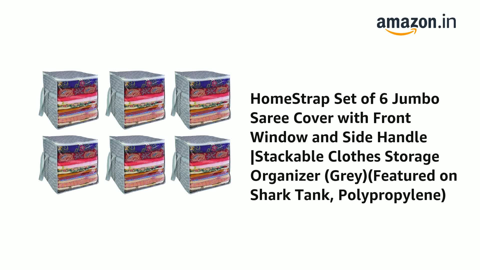 Homestrap Set of 6 Jumbo Saree Cover with Front Window and Side Handle |Stackable Clothes Storage Organizer (Grey)(Featured on Shark Tank Polypropylene)
