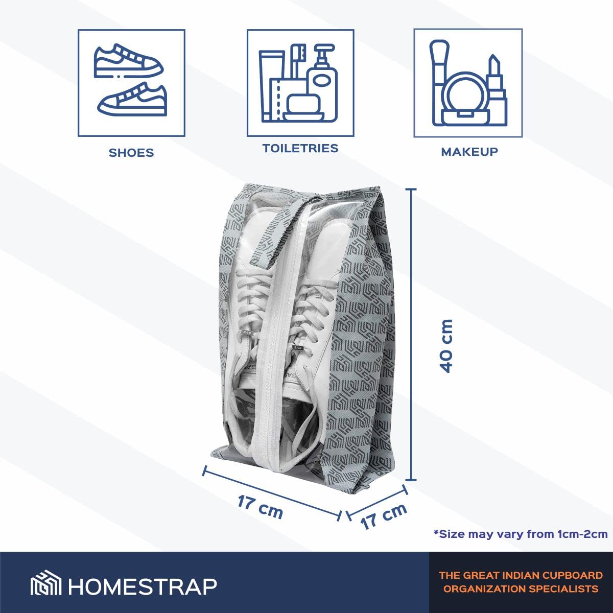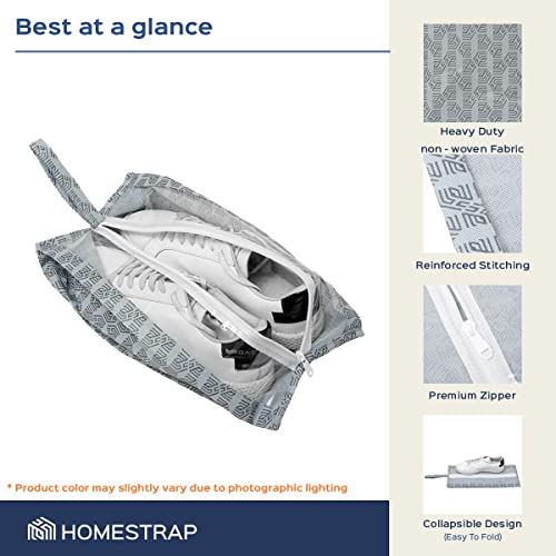 About HomeStrap Shoe Bags: HomeStrap Travel Shoe bags / Golf Shoe Bags is good design for home and travel use. Keep your shoes separated from clothes in the luggage during the trip. Also great for keeping your favourite shoes from getting dusty in the closet! Durable & Easy to clean : Superior fabric: Made up of high quality non-woven Waterproof function. Lightweight and does a perfect job of packing shoes and keeping everything else clean. Smooth feeling & Very easy to clean & Quick dry. Large enough for almost all kind of shoes like sports shoes high heels. Specialized Custom-made Zipper : Strong Zipper Specialized Custom-made zipper with high quality smooth zipper teeth zips up smoothly. The centre zipper design makes it easy to get items in and out. Must have for everyday use and travel : HomeStrap Travel Shoe Bags is not only prefect for travel but also home use keeping items separated and organized. Can also be used as makeup bag toiletries bags and for other uses.