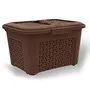 Karma basket is a multi utility basket comes with lockable lid handle and horizontal removable tray inside the basket to keep stuff separated can be used for going temple with all Pooja stuff together tool kit carry items on journey new born babies item kit ideal usage is for storing and carrying items like tools art and craft stationery medicines cosmetic new born babies items kitchen aids and other stuffs. Stored items remains dust free with the help of closing lid and knit design provides ventilation to prevent bad odour. Has handle feature which makes it convenient to hold and carry items also comes with one sided lock to make the items secure while carrying them.