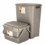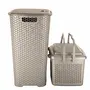 Jaypee plus combo- drop all laundry basket carry all xl- multiutility basket with handle together are one solution to keep things organise. Drop all is the perfect solution to organize your dirty clothes at a single place and for convenience in doing laundry. The laundry basket is made of tough plastic that keeps it durable for a long period of time. The laundry basket comes with a lid for hassle free and neat storage. Carry all xl multiutility basket with handle is a multi-purpose basket can be utilized for any kind of work (to store/to carry) all baskets is made with modular knit design which adds a touch of style to one's home. Stylish and trendy look durable as made up of high quality plastic this will last for longer. Simple and elegant- you can simply keep it on any flat surface.