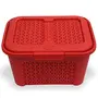 Karma Basket is a Multiutility basket comes with lockable lid handle & horizontal removable tray inside the basket to keep stuff seprated can be used for going temple with all pooja stuff together tool kit carry items on journey new born babies item kit Ideal usage is for storing & carrying items like Tools Art and Craft Stationery Medicines Cosmetic new born babies items kitchen aids and other stuffs. Stored Items remains Dust free with the help of closing lid & knit design provides ventilation to prevent bad odour. Has handle feature which makes it convenient to hold & carry items also comes with one sided lock to make the items secure while carrying them.