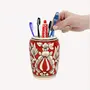 HomeHome ImprovementHousehold SuppliesKHURJA POTTERY Ceramic Handmade Tooth Brush Holder Stand | Perfect for Bathroom and WashbasinFloral RED | 4 Inch (Red)