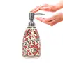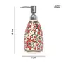 This elegantly Liquid Soap Dispenser Bathroom Set is handcrafted in brilliant blue pottery. It features a timeless design blending White with a delicate filigree swirl and leaf motif. Lustrous clear glazed blue pottery is a unique art form whose origins date back to ancient Turkey. Each piece comes with a brilliant white interior that beautifully sets off the red patterns.