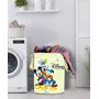Kuber Industries Disney Team Mickey Round Non Wovan Laundry Basket with Lid & Handles|Collapsibal Material|Durable Stiched Handles|Size 37 x 37 x 47 CM |Capicity 45 LTR (Cream)-KUBMART12049