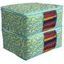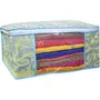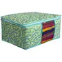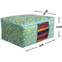 Premium quality zipper for easy opening and closing transparent front window for clear visibility. Long life high quality saree cover bag for organizing your costly and favourite sarees. Package content- 6 Piece. Color- green design-metalic leaf print.. Size: 44 cm x 33 cm x 18 cm. Care instructions: clean with a dry cloth.