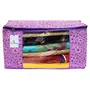 Material: Non Woven Color: Pink Purple & Ivory Red. Design- Metalic Printed .Package Contents: 2 Piece Saree Cover .Size: 43 cm x 35 cm x 22 cm .Made from durable wear and tear-resistant non-woven fabric. Lightweight and flexible saree covers .Carefully stitched to offer additional strength. Ideal for storing sarees and protecting them from dust and insects .Transparent see-through window for easy identification of contents. Durable zipper for easy opening and closing.