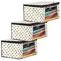 Material: non woven color: and and and Ivory. Design- polka dot.Package Contents: 3 piece saree cover.Size: 43 cm x 35 cm x 22 cm.Made from durable Wear and tear-resistant non-woven fabric. Lightweight and flexible saree Covers.Carefully stitched to offer additional strength. Ideal for storing sarees and protecting them from dust and insects.Transparent see-through window for easy identification of contents. Durable zipper for easy opening and closing.