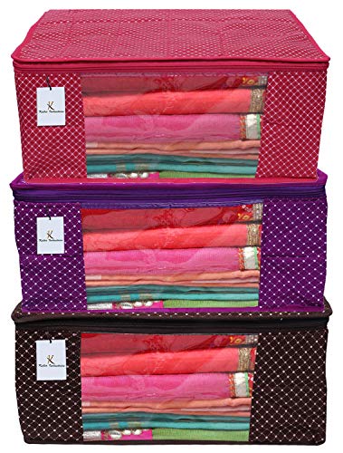 Material: Cotton Color: Multi Size: 41 cm x 35 cm x 19 cm Package Contents: 3 Piece Saree Cover Material: Cotton Color: Pink Purple and Brown Design : Hathkadi Print Made in 3 Layered Quilted Material