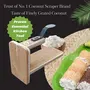How to use: Position the scraper on any flat surface at a comfortable and convenient height. Stand close to its flat side and begin scraping the coconut firmly.