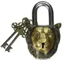 PARIJAT HANDICRAFT Functional Brass Beautiful Padlocks with Two Keys Functional Brass Garden Padlock in Lion Head
