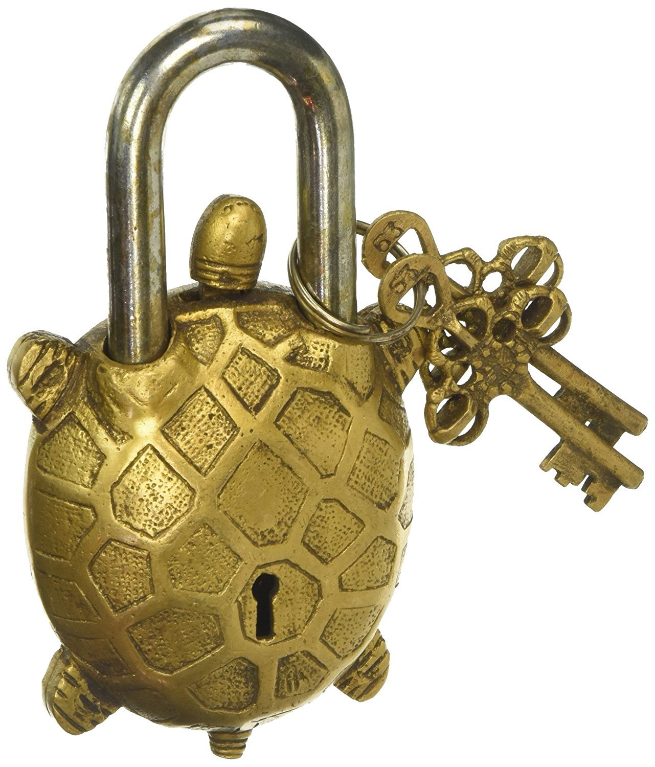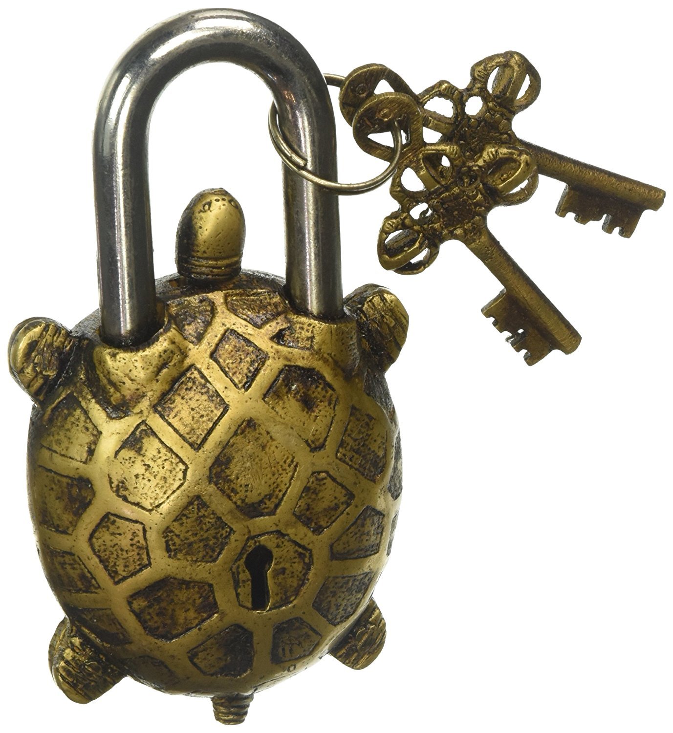 Newly Handmade Brass Functional Padlock Best Quality Reproduction - Antique Style TORTOISE Lock - Brass Made - Working Lock - Comes With 2 Key As Shown In Pictures - Please Check All My Pictures For Condition - THIS IS TRICKY LOCK. AFTER OPEN THE KEY WE HAVE TO MOVE THE MOUTH AND IT WILL OPEN - This Is Not Just A "Decorative Piece" This Is Working Lock. The Functional Brass Turtle Padlock 5.5" with Two Keys Made from Solid Brass This functional Padlock has Sculptured Like a Turtle This beautiful reproduction of an ancient Tibet Padlock is 5.5 inch high and 3 inch wide and weighs 527 Grams